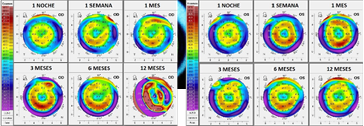 Imagen 3. Topografías de OD y OI durante el tratamiento de OK